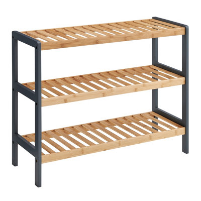 LIVIVO 3TIER Natural Bamboo Shoe Rack with 3 Shelves, Large Storage